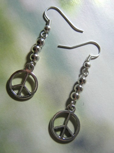 Par Plata Con cuentas Símbolo De Paz Charm CND Pendientes,Punk Gótico Hippie