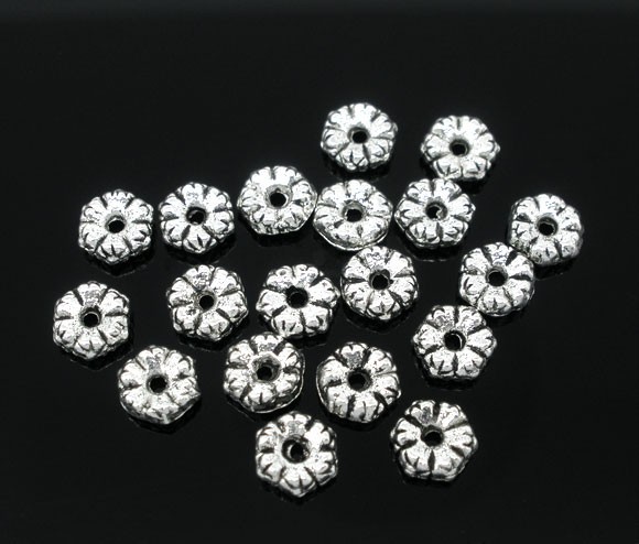 PACK DE aprox. 40 PLATA TIBETANA CUENTAS ESPACIADORAS - 5mm B039