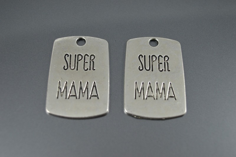 5 colgantes "Super MaMa" zamak,abalorios bisutería, plateados