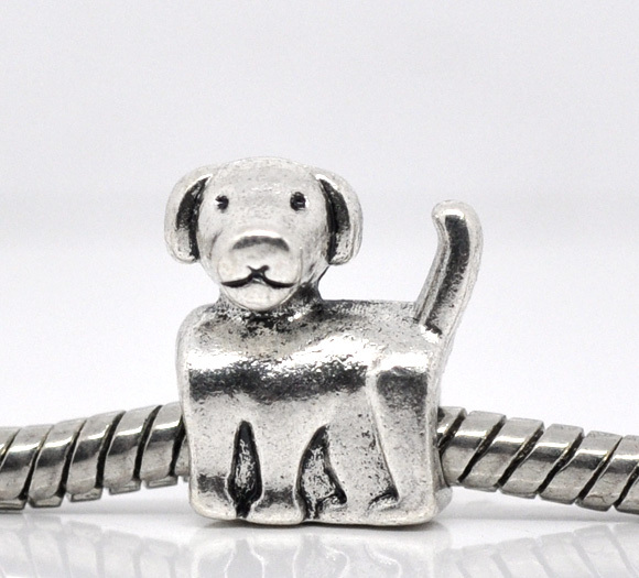 Abalorio-Colgante con forma de "PERRO" para cadena-pulsera europea , de plata V