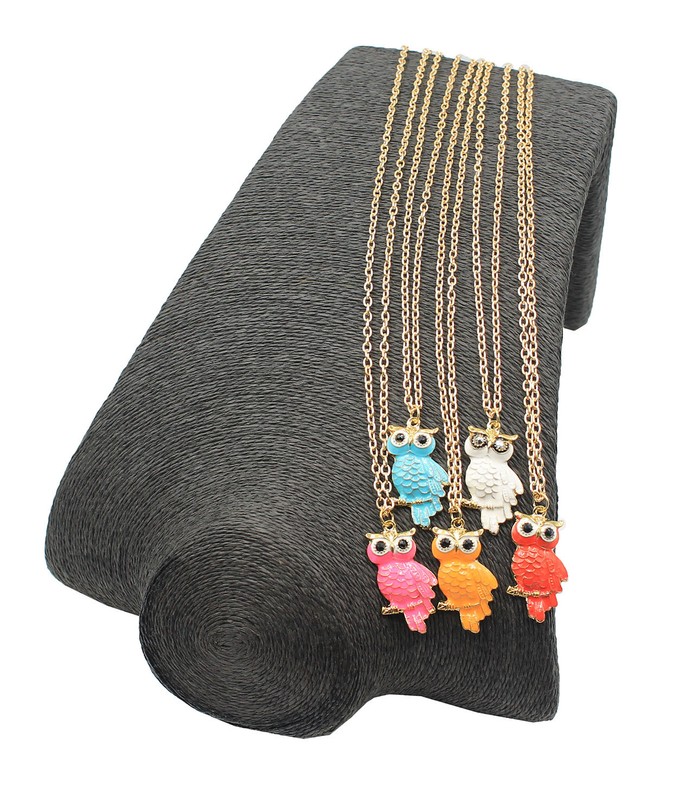 Colgante Collar de Buho Pequeño de Colores con Cadena Dorada