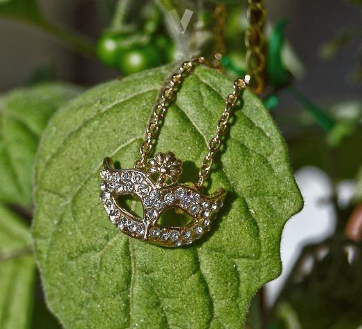 Bonito colgante con cadena bisuteria Mascara dorada vintage retro mask