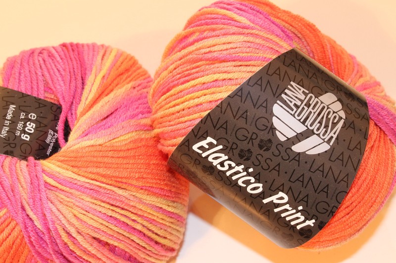 Wolltruhe! Lana Grossa Elastico print 510 hummer/camel/pfirsich/himbeere 50g