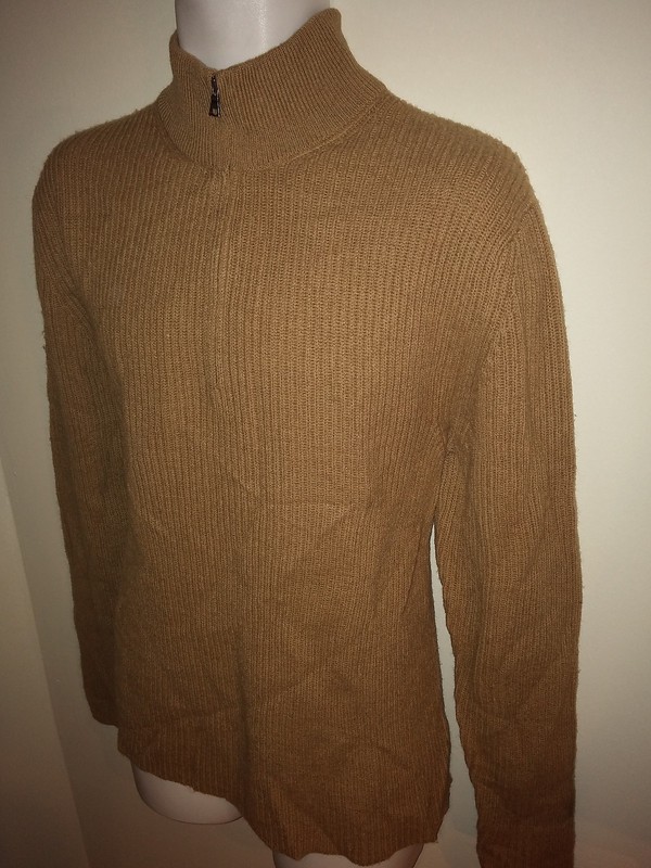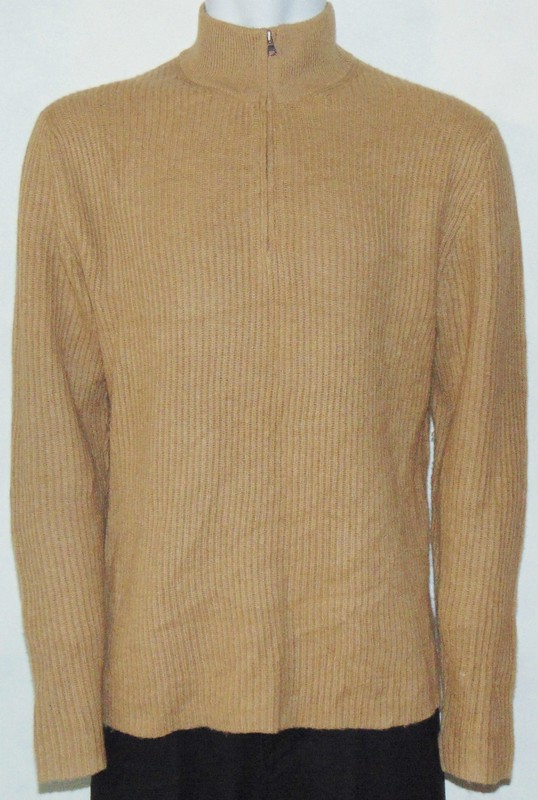 Men's Banana Republic 1/2 Zip Sweater L Wool Camel Hair Pullover Ribbed Long Slv