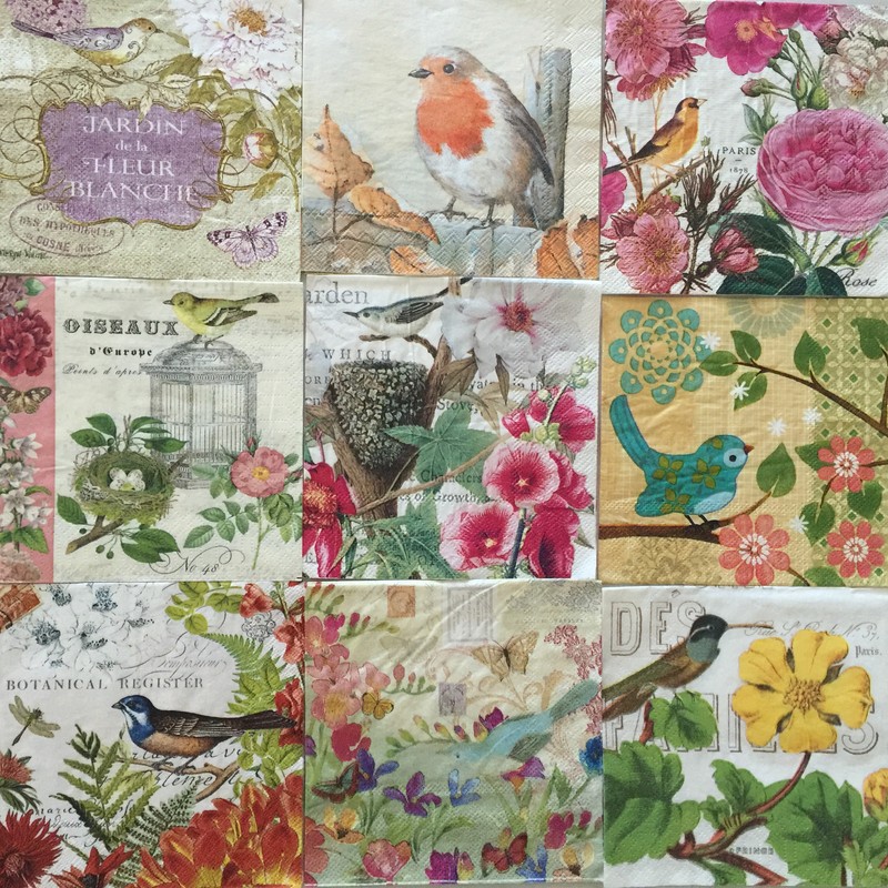 9 NINE Paper Napkins Decoupage Birds Mixed Assorted Floral Beverage Craft*