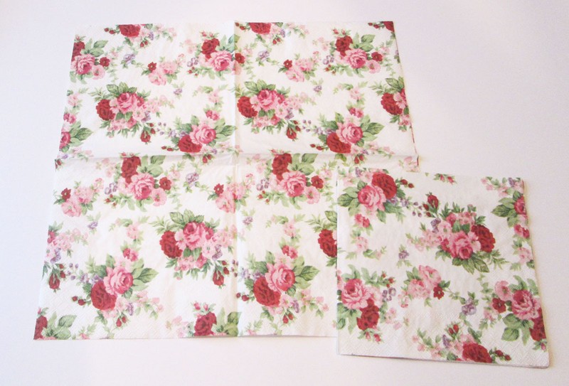5 NEW SM GERMAN VICTORIAN PINK FLOWERS ROSES FLORAL PAPER DECOUPAGE NAPKINS
