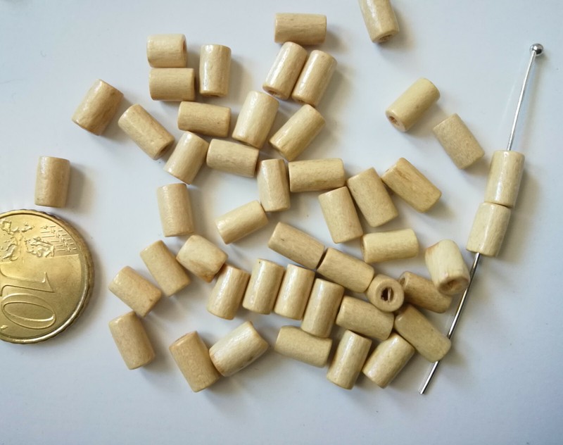 Perlas tubo madera natural tono claro X 40 UNIDADES 10 x 6 mm cuero abalorios
