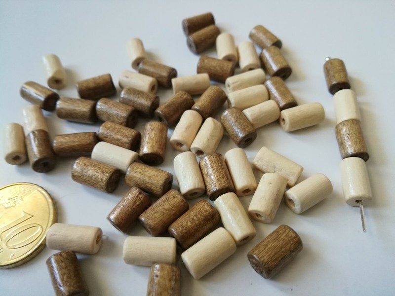 Perlas tubo madera natural 2 tonos X 40 UNIDADES 10 x 6 mm cuero abalorios