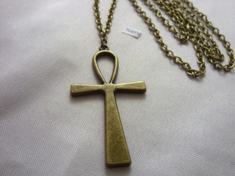 Grandes Bronce Estilo Egipcio Ankh Cruz Abalorio,Largo 76.2cm Collar De Cadena