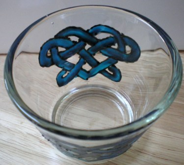 Votive Candle Holder - Hand painted Celtic blue knot heart